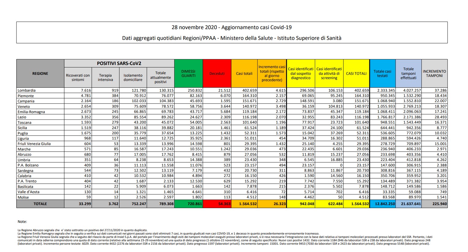 Leggi anche Coronavirus in Italia, il bollettino del 27 novembre: -64 terapie intensive