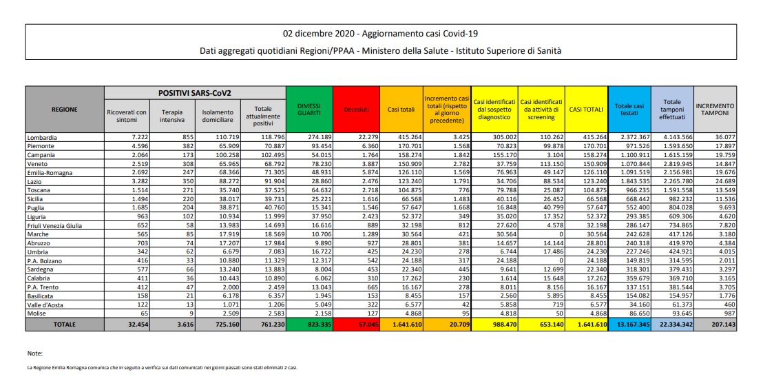 Home » Coronavirus in Italia, il bollettino del 2 dicembre: aumentano i guariti