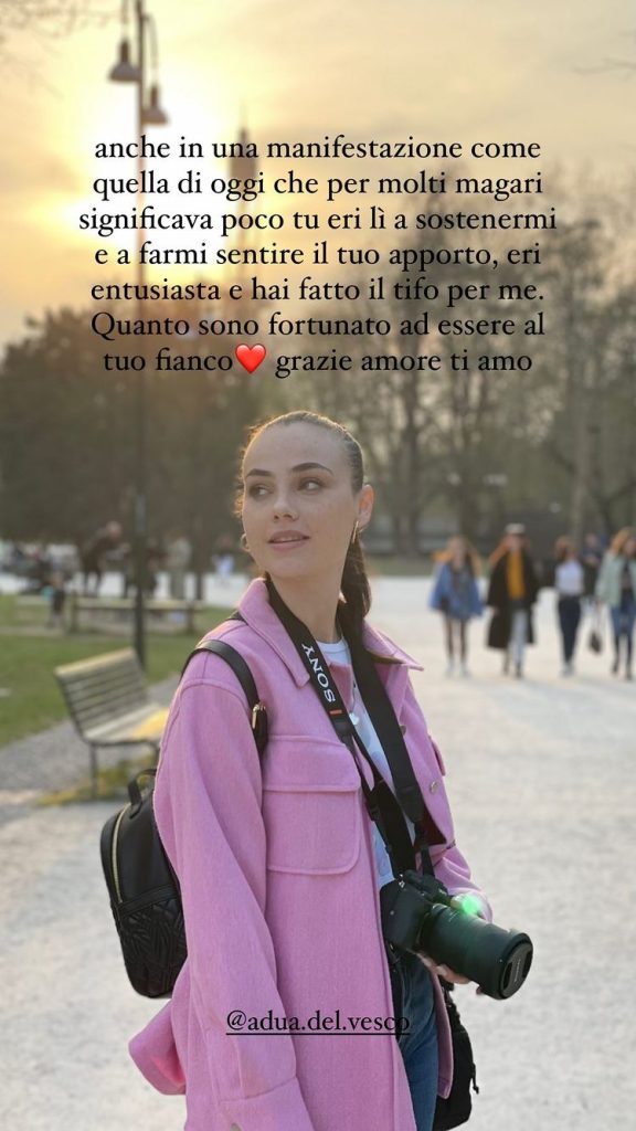 “Anche in una manifestazione come quella di oggi che per molti magari significava poco tu eri lì a sostenermi e a farmi sentire il tuo apporto, ero entusiasta e hai fatto il tifo per me. Quanto sono fortunato ad essere al tuo fianco grazie amore ti amo”.