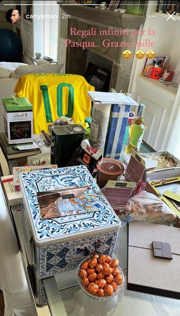 L’amato Can questa mattina ha ringraziato tutti i fan per i regali di Pasqua ricevuti direttamente a casa sua. Can è stato inondato di affetto con tantissimi doni e cioccolato, l’attore ha commentato il gesto dei fan con queste parole: “Regali infiniti per la Pasqua…Grazie mille”.
