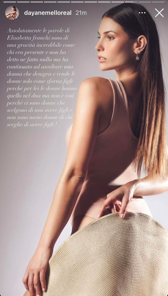 “Assolutamente le parole di Elisabetta franchi sono di una gravità incredibile come chi era presente e non ha detto ne fatto nulla ma ha continuato ad ascoltare una donna che denigra e rende le donne solo come sforna figli perché per lei le donne hanno quello nel dna ma non è cosi perché ci sono donne che scelgono di non avere figli e non sono meno donne di chi sceglie di avere figli”