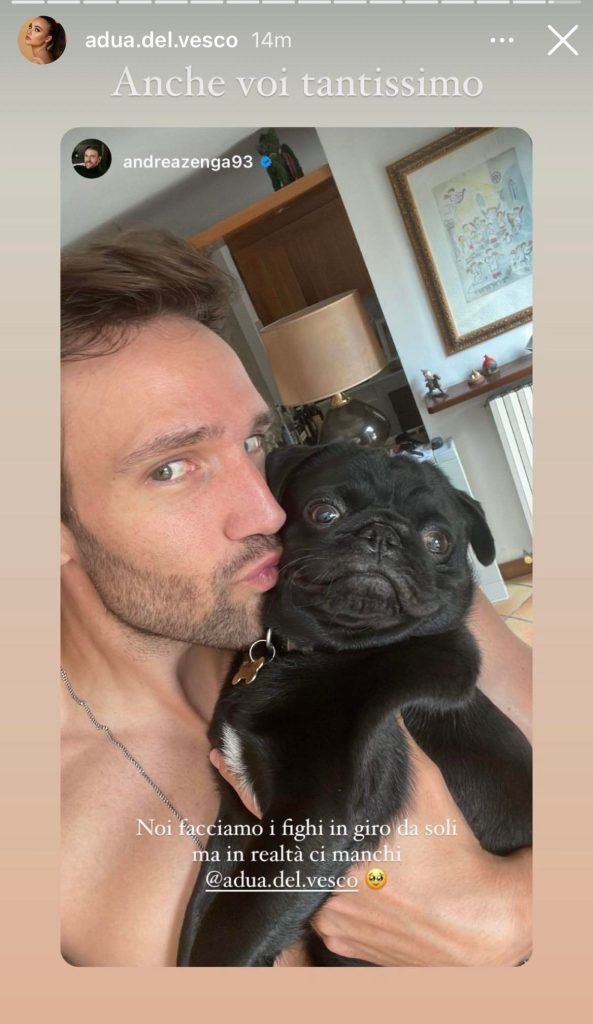 L’amato Zenga è partito ieri per raggiungere Osimo dove sta continuando ad aggiornare i propri fan in merito a questa breve vacanza in famiglia con il cucciolo Chinu. Nel frattempo nelle ultime ore Andrea e Chinu si sono scattati un meraviglioso selfie aggiungendo come didascalia: “Noi facciamo i fighi in giro da soli ma in realtà ci manchi Rosalinda” ha aggiunto Andrea. L’attrice ha replicato dichiarando: “Anche voi tantissimo”.