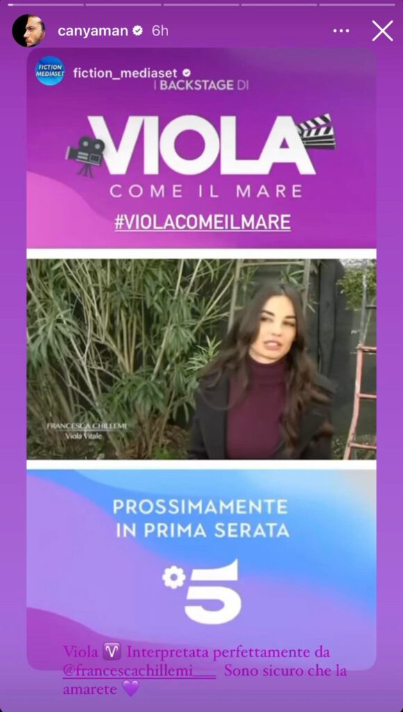 Intanto negli ultimi giorni è stato pubblicato il promo ufficiale e anche alcuni estratti di backstage registrate durante le riprese. L’attore Can nelle ultime ore ha condiviso un nuovo estratto di “Viola come il mare” dove la Chillemi presenta al pubblico il suo personaggio. L’attore ha aggiunto come didascalia: “Viola interpretata perfettamente da Francesca Chillemi. Sono sicuro che la amerete”.
