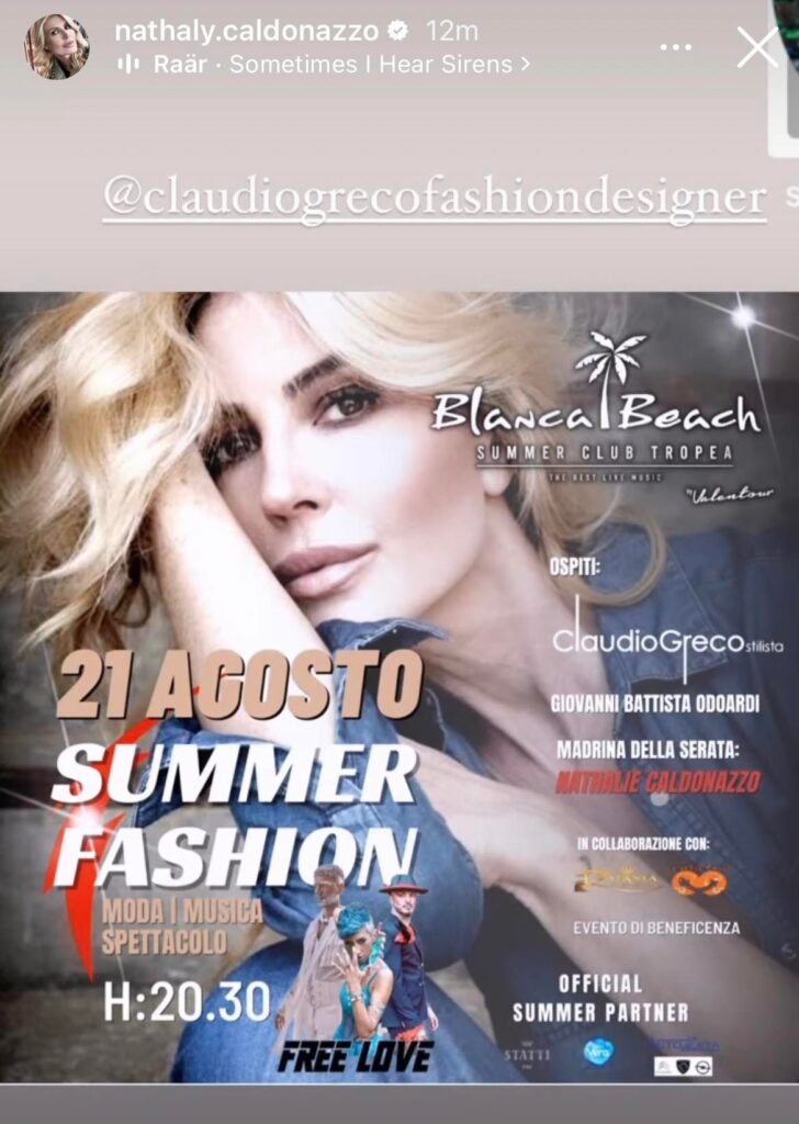 Nelle ultime ore Nathaly attraverso le sue stories Instagram ha annunciato con una locandina ufficiale un nuovo evento dove potrà incontrare i suoi fan. L’ex gieffina il prossimo 21 agosto sarà a Tropea al Blanca Beach per il Summer Fashion, moda, musica e spettacolo a partire dalle ore 20:30. La Caldonazzo per questa speciale serata d’estate sarò la madrina dell’evento.